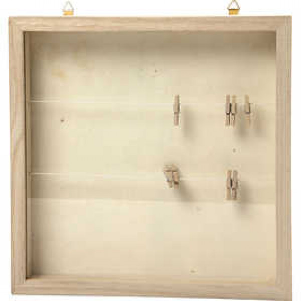 3D lijst met 2 waslijnen en 8 kleine wasknijpers. Het schuifdeksel is gemaakt van perspex.