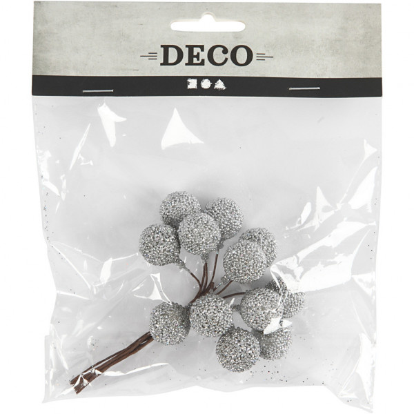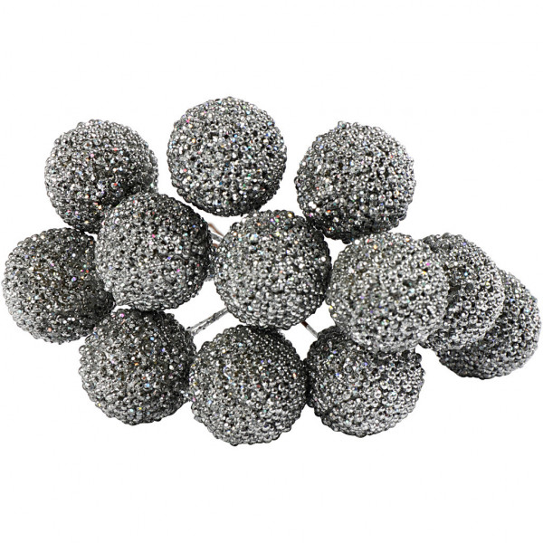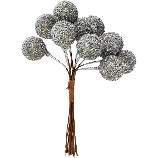 Kunst bessen, d: 15 mm, zilver, 12stuks [HOB-504411]