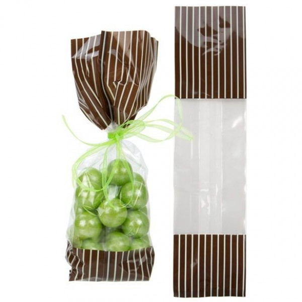 Bedrukte Zakken Bruin met Crême strepen 6,7x4,8x27,3cm met zijvouw (100 stuks) [G2BNC]