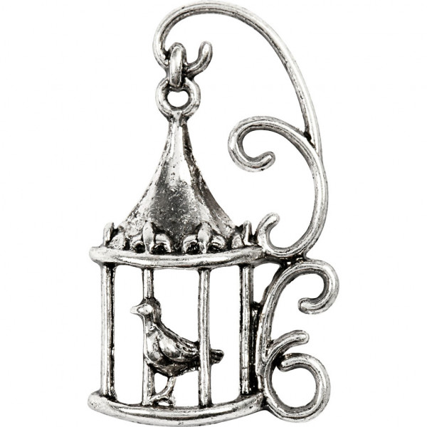 Vogelkooi, h: 35 mm, gatgrootte 1 mm, antiek zilver, 6stuks [HOB-63222]