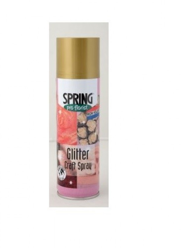 Spring Pro Florist Goud Glitter Spray geeft je creaties een sprankelend effect! Goed bruikbaar op karton, aardewerk, hout, steen, metaal, glas enz.