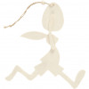 Rabbit with eggs in light wood. Mounted with natural cord for suspension.