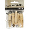 Houten lijven met sleuf en ophangoog - vlindervleugels van folie passen in het lijf.