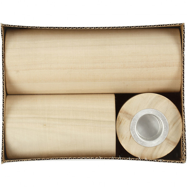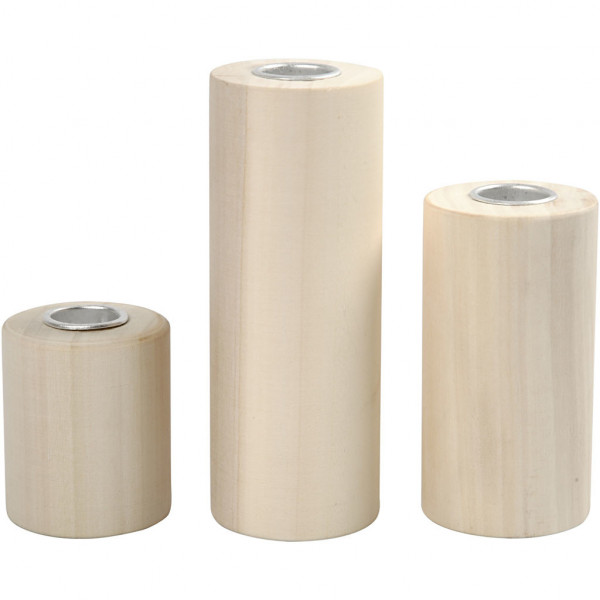 Kandelaars, h: 14,5+9+6,5 cm, gatgrootte 2,3 cm, populier, 3stuks [HOB-56413]