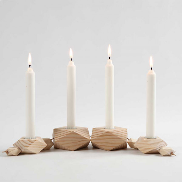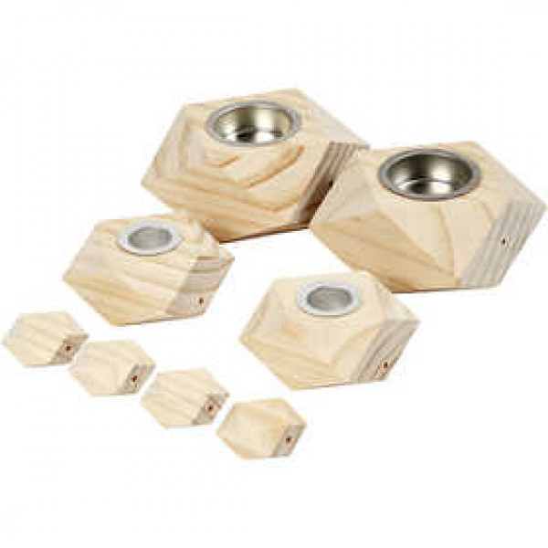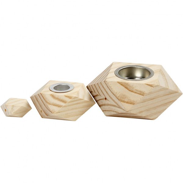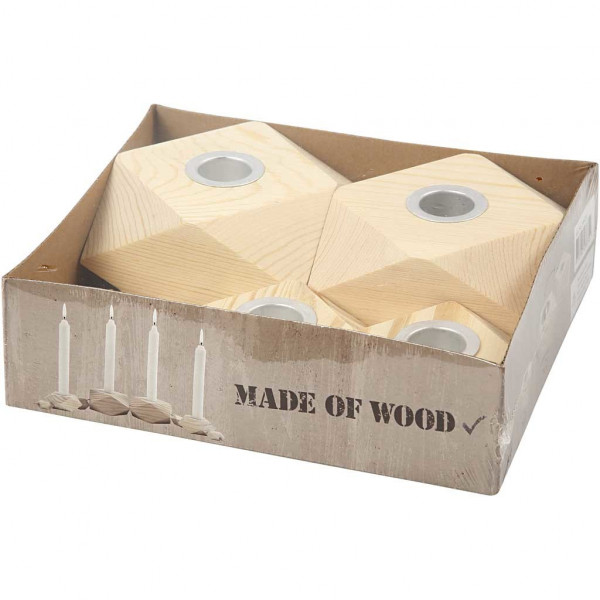 Kandelaars, h: 3,4+5 cm, d: 6,2+9 cm, grenen, 1set, gatgrootte 2,2+4,2 cm [HOB-56429]