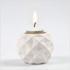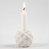 Kandelaar gemaakt van wit terracotta met 3D harlekijn patroon met aan de ene kant ruimte voor een waxinelicht en aan de andere kant voor een kaars.