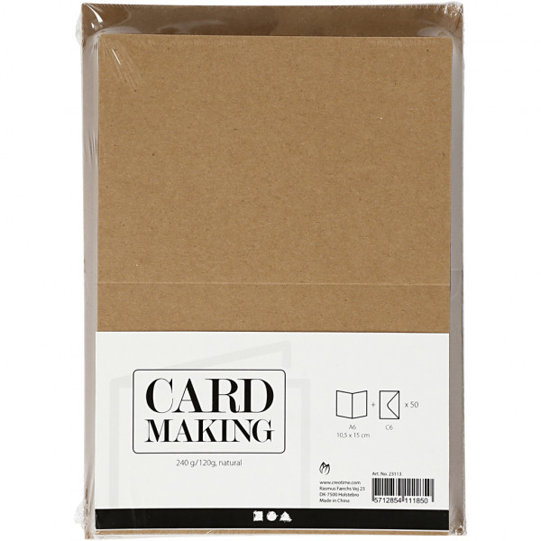 Kaarten en enveloppen, afmeting kaart 10,5x15 cm, afmeting envelop 11,5x16,5 cm, naturel, 50sets [HOB-23113]