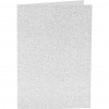 Dubbele blanco kaarten met glitter aan de buitenkant van dikke kwaliteit (250 gr) met bijpassende envelop (120 gr) met gomsluiting.