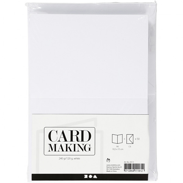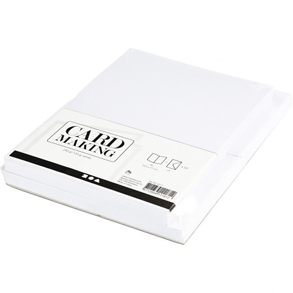 Kaarten en enveloppen, afmeting kaart 10,5x15 cm, afmeting envelop 11,5x16,5 cm, wit, 50sets [HOB-23111]