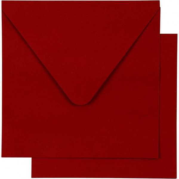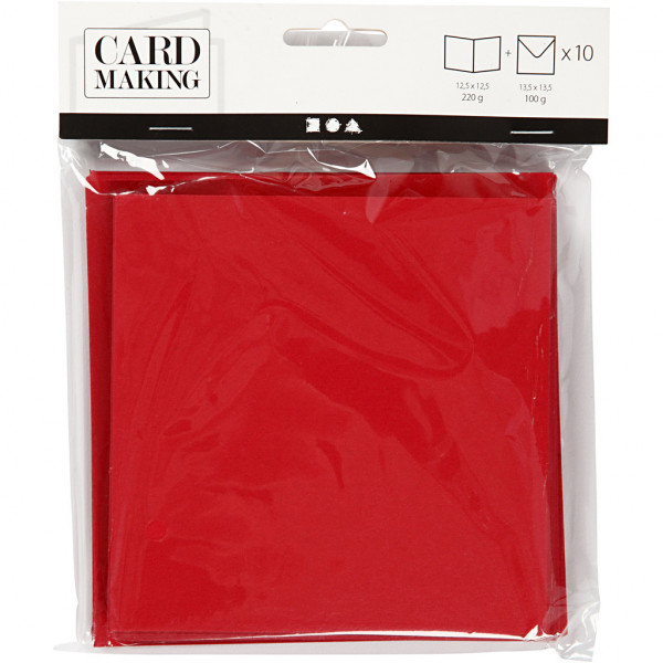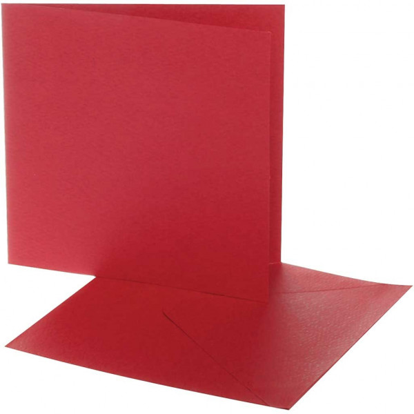 Kaarten en enveloppen, afmeting kaart 12,5x12,5 cm, afmeting envelop 13,5x13,5 cm, rood, 10sets [HOB-23734]
