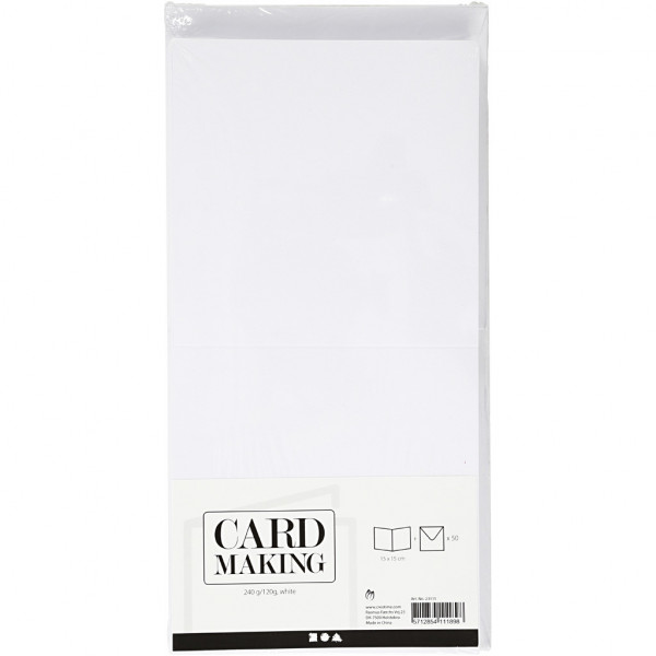 Kaarten en enveloppen, afmeting kaart 15x15 cm, afmeting envelop 16x16 cm, wit, 50sets [HOB-23115]