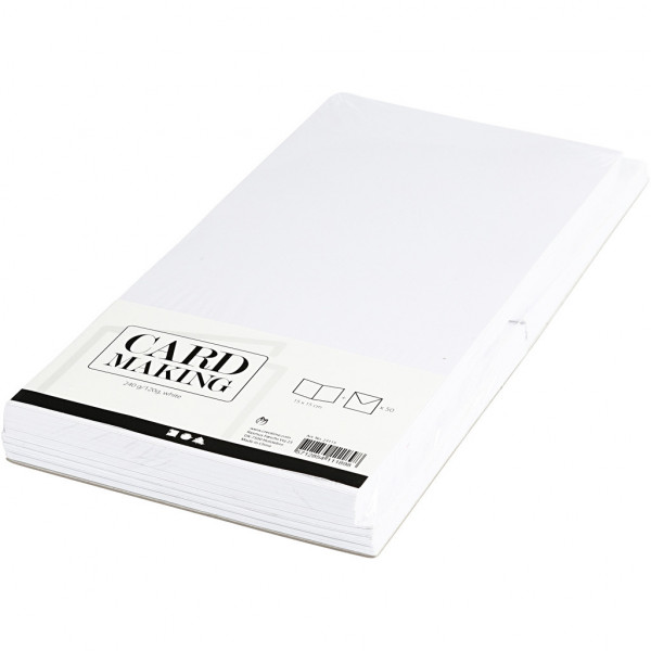 Dubbele blanco kaarten gemaakt van kwaliteitskarton (240 gr), geleverd met bijpassende enveloppen van papier (120 gr).