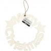 Christmas hanging of bright wood with dark edges and suspension cord.