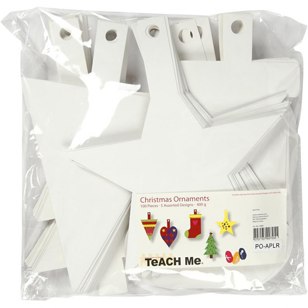 Kerst ornamenten, h: 23,5-26,5 cm, b: 15,5-20,5 cm, wit, 100stuks, 400 gr [HOB-23881]