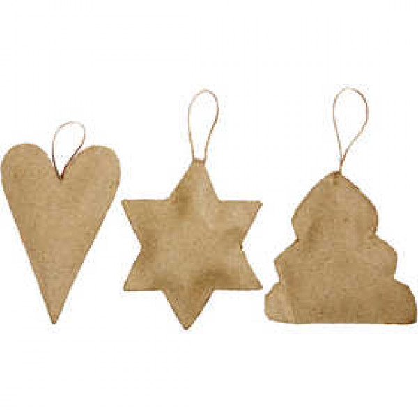 Kerst ornamenten, hart, ster en kerstboom, afm 8-9 cm, 9stuks [HOB-265303]