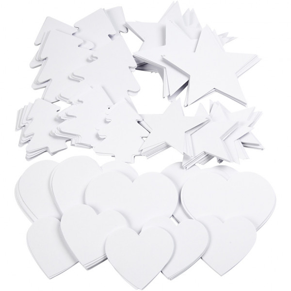 Uitgestanste vormen van wit karton - assortiment bevat verschillende maten.