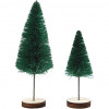 Kleine bomen gemaakt van gedraaid draad en nylon haren. Elek boom wordt geleverd met een kleine, houten staander. Wordt gebruikt voor kleine kerstlandschappen voor bijvoorbeeld in de vensterbank.