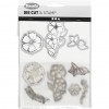 Set of clear silicone stamps that can be combined with the supplied punch templates. For punching in cardboard, paper, cards and the like. Used in punching and embossing machine item no. 11761, 11792 and 11799.