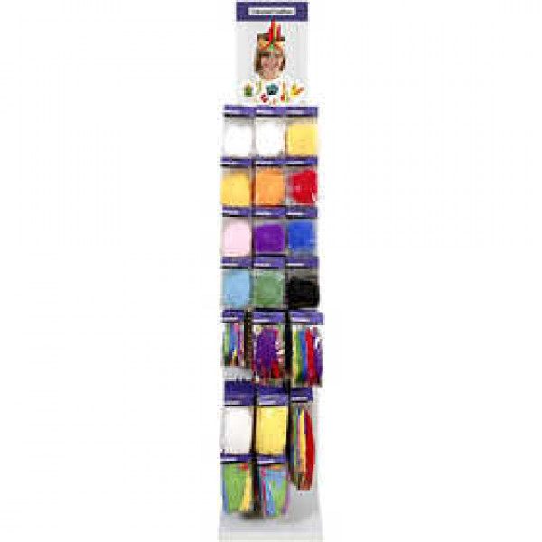 Inhoud: 12 verschillende kleuren, van elk 20 pakken, 4 verschillende maten van elk 16-24 pakken, 4 verschillende kleuren van elk 20 pakken.