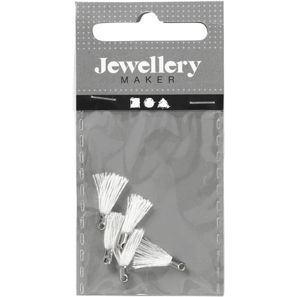 Tassel, l: 10 mm, gatgrootte 1 mm, wit, 5stuks [HOB-61184]
