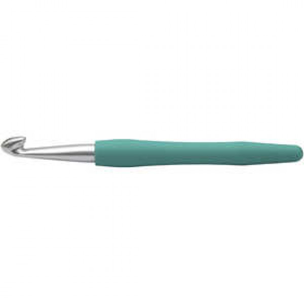 Ergonomische haaknaald van aluminium met plastic handvat met softgrip.