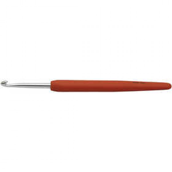 Ergonomische haaknaald van aluminium met plastic handvat met softgrip.