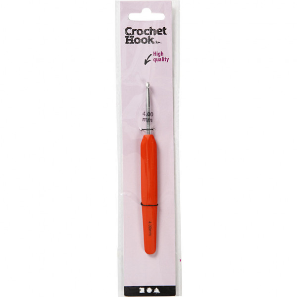 Haaknaald, 4 , l: 13,3 cm, oranje, 1stuk, lengte handvat: 9,3 cm [HOB-42384]