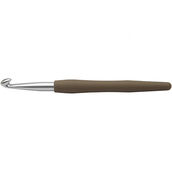 Ergonomische haaknaald van aluminium met plastic handvat met softgrip.