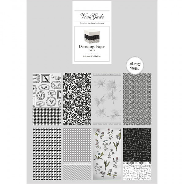 Enkelzijdig, semi-transparant decoupagepapier met bedrukking van de Vivi Gade Design serie.