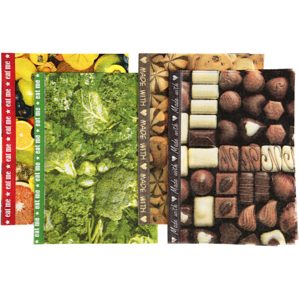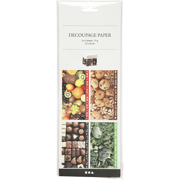 Decoupage papier, vel 25x35 cm, 17 gr, bruin, groen, geel, food, 8div vellen [HOB-254910]