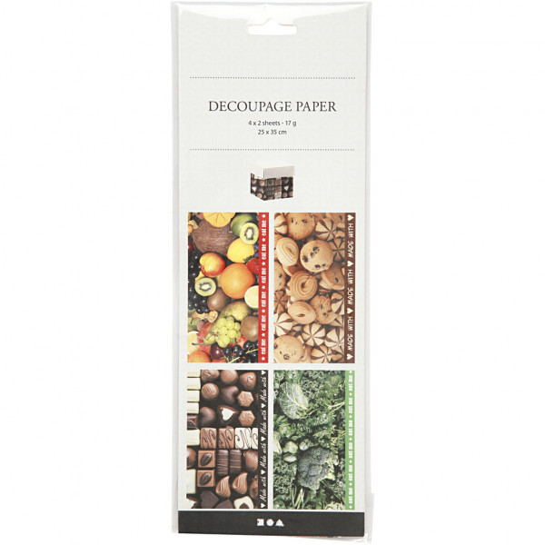 Decoupage papier, vel 25x35 cm,  17 gr, bruin, groen, geel, food, 8div vellen [HOB-254910]