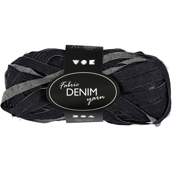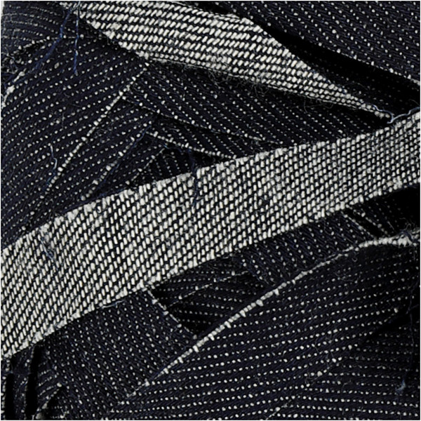 Garen gemaakt van denim van 100% katoen, Vooral geschikt voor stevig breien of haken of voor, bijvoorbeeld, interieurdecoratie, tassen, etc. 12 st x 12 st = 10x10cm met haaknaald nr. 5. Wasbaar op 40°C.