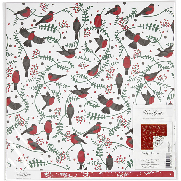 Design papier, vel 30,5x30,5 cm, 180 gr, vogels en takken, 5vellen [HOB-25340]