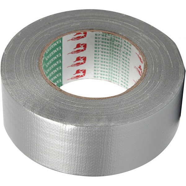 Zeer klevend tape met zilverkleurig oppervlak - ook bekend als duck tape.