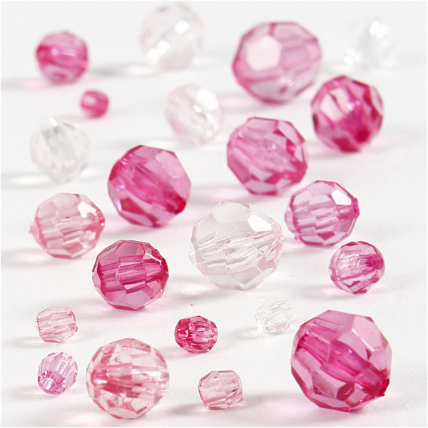 Facetkralen mix, afm 4-12 mm, gatgrootte 1-2,5 mm, roze harmonie, 45gr, circa 170 stuk [HOB-618841]