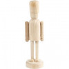 Figure in bright wood with fine details and moving arms. Mounted on foot so the figure can stand.