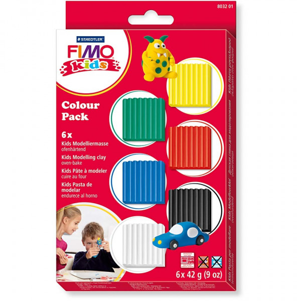 FIMO® Kids boetseerklei, standaardkleuren, 6x42gr [HOB-78536]
