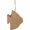 Vissen van papier-maché met jute ophangkoord.