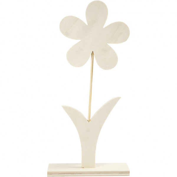 Flower in light wood mounted on foot so that it can stand freely.