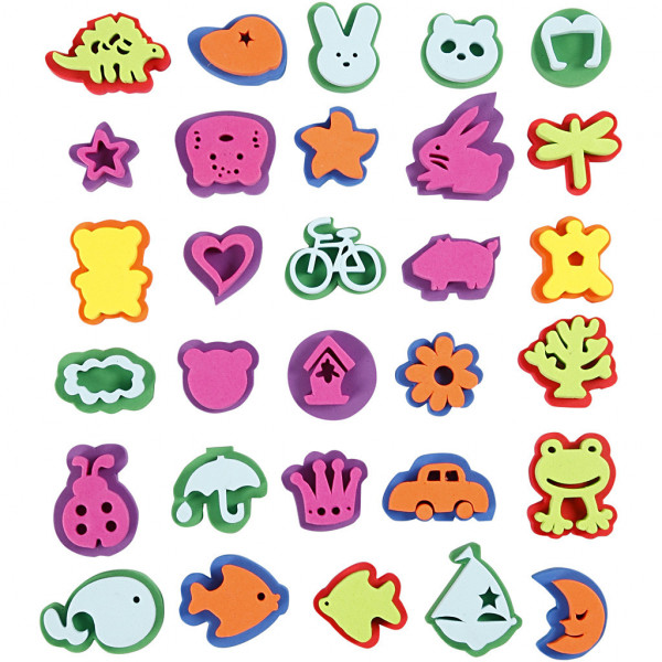 Foam stempels, afm 3-5 cm, dikte 1,7 cm, 55div [HOB-28559]