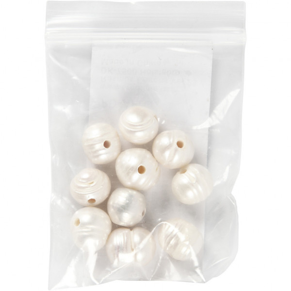 Zoetwater parels, afm 9-11 mm, gatgrootte 2 mm, parelmoer, 10stuks [HOB-631242]
