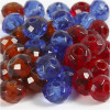 Ronde glaskralen met groot gat en handgemaakt, facet oppervlak.