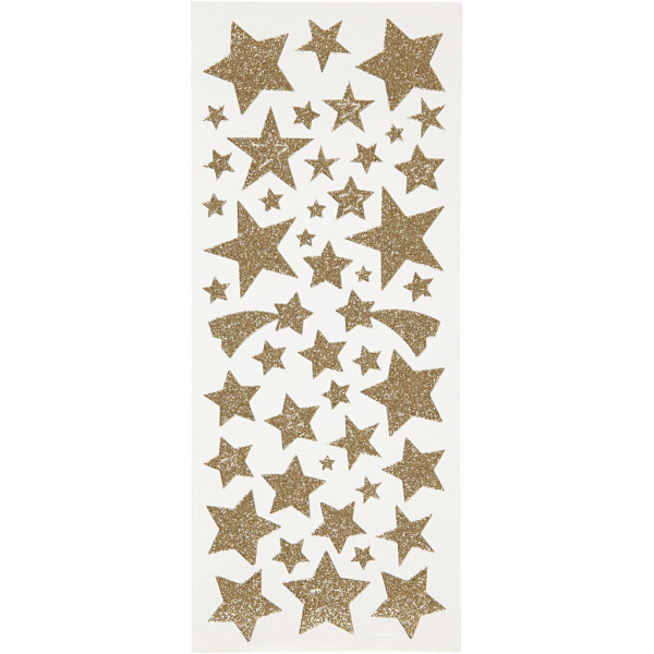 Glitter stickers, vel 10x24 cm, circa 110 stuk, goud, sterren, 2vellen [HOB-29110]