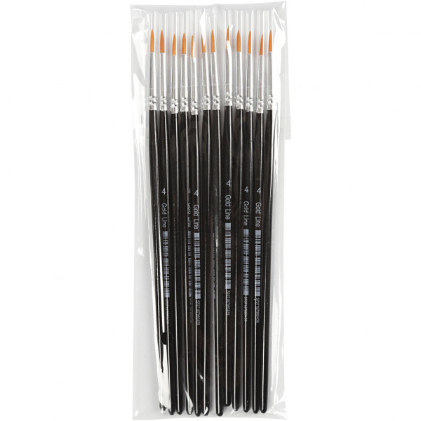 Gold Line penselen, 4 , b: 3 mm, rond, 12stuks [HOB-10704]