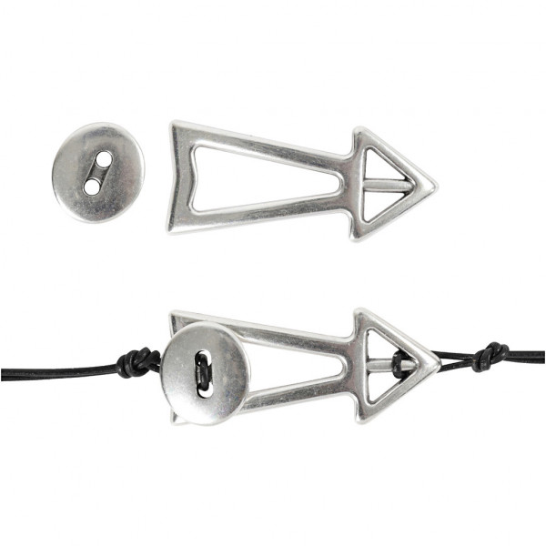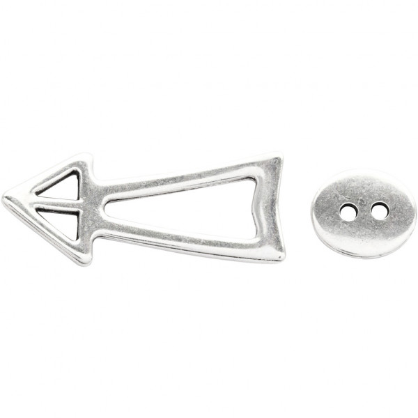 Tweedelige sieradensluiting van metaal in de vorm van een pijl en boog.