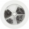 Inhoud: 10 sluitingen, 50 knijpkralen, 20 kralen punten, 20 ronde ringen en 5 m sieradendraad.