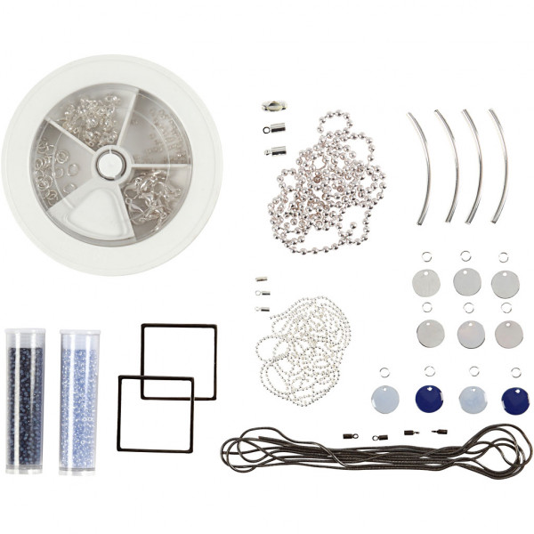 Inhoud: 3 verschillende soorten ketting van 1 m, 2x7 gr rocailles, 2x4 hangers van emaille en sieraden kit.