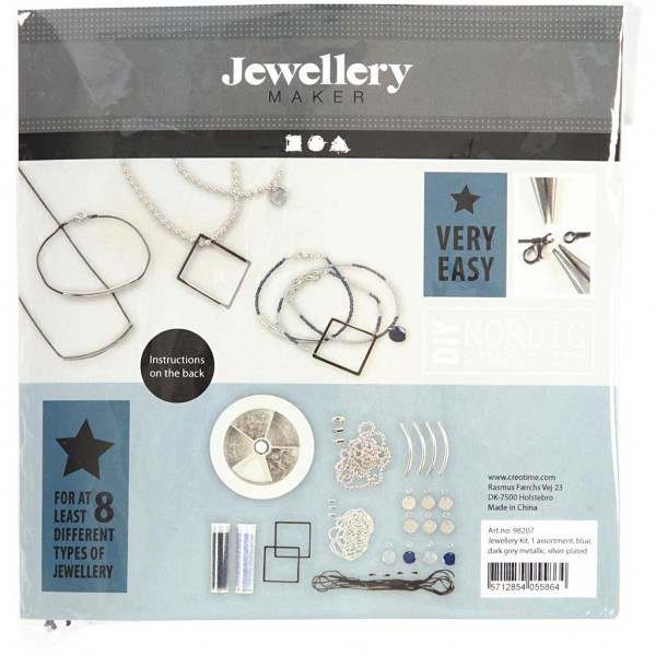 Sieradenset - Nordic Simplicity, blauw, donker metallic grijs, verzilverd, 1assortim. [HOB-98207]