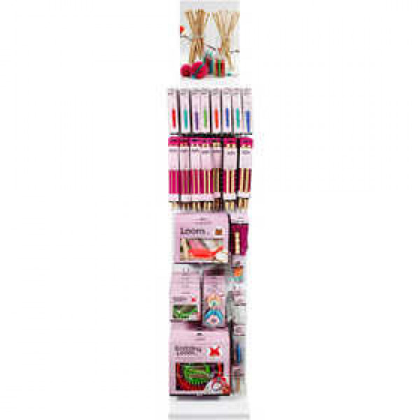 Inhoud: 70 paar breinaalden, 80 haaknaalden, 8 breringen, 6 pompom-makers, 4 houten looms, 6 breiringen, 20 garennaalden, 20 breinaalden en 20 sets steekmarkeerders.