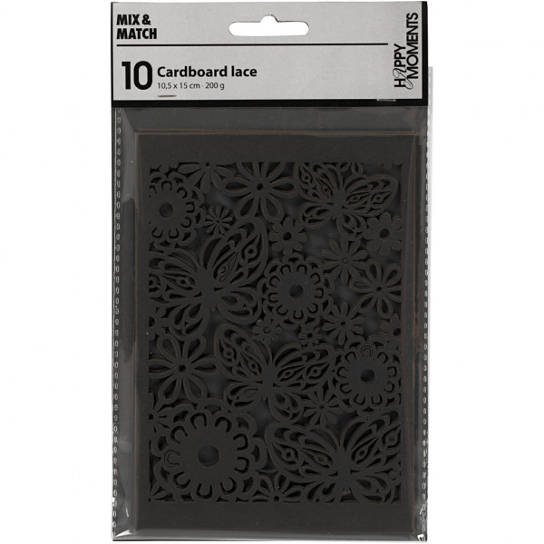 Lace Patterned cardboard, sheet 10.5x15 cm, 200 g, 10 pcs, black [HOB-216912]